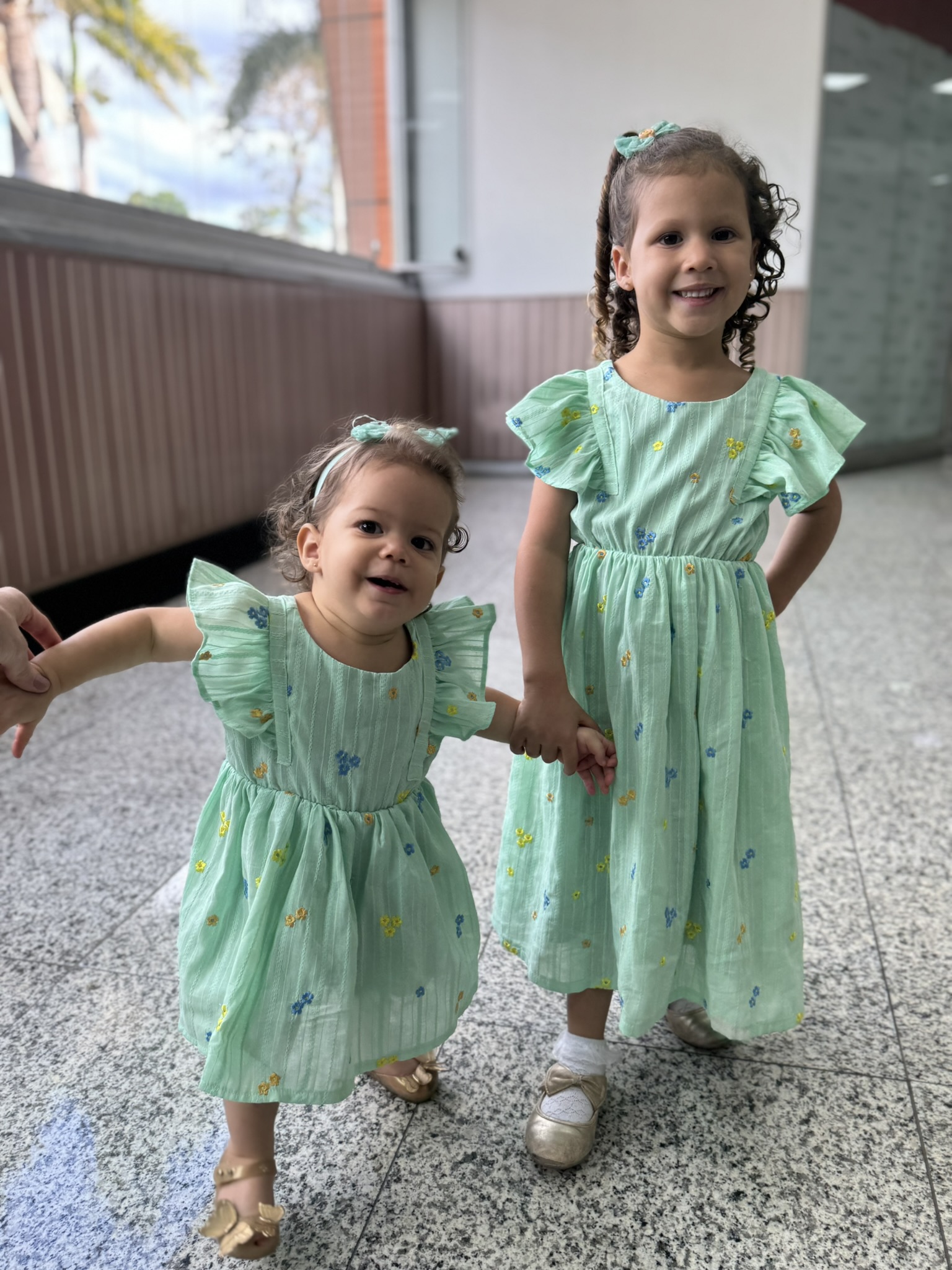 O Vestido Infantil Daniele é feito em algodão bordado,